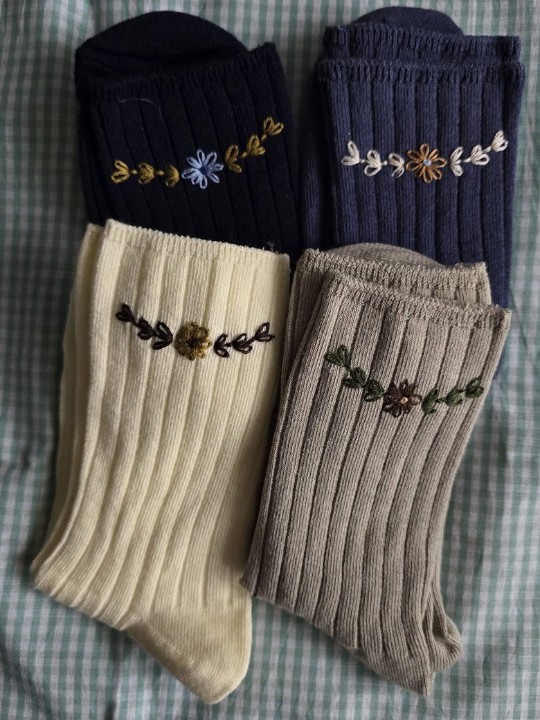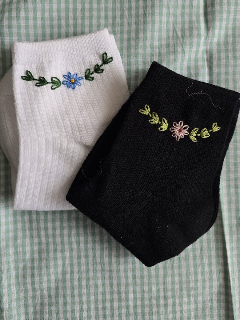 Calcetines de diferentes modelos y colores todos bordados a mano con flores. Talla grande desde la talla 39 hasta la talla 41