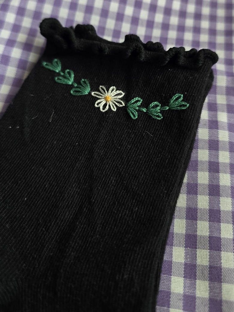 Calcetines de diferentes modelos y colores todos bordados a mano con flores. Talla pequeña desde la talla 36 hasta la talla 38.